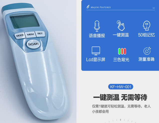 Cum'è unu di i segni vitali di basa, a temperatura di u corpu pò riflettore u staticu metabolicu è a salute di u corpu. Cù riferimentu à parechji tippi in u mercatu, l'scelta più cunvenuta hè a termometra senza frunti senza cuntattu Per evità errori di misurazione di temperatura, hè necessariu di sceglie un termometru di fronte di alta qualità. Per esempiu, KIEYYUEL â € ™ KF-HW-001, test à alta velocità infrarossu, pò percepisce cambiamenti di temperatura di u corpu di 0,1 ° C.